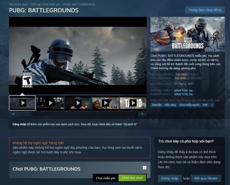 Bước 1: Bạn login vào Steam và tìm PUBG: Battlegrounds.