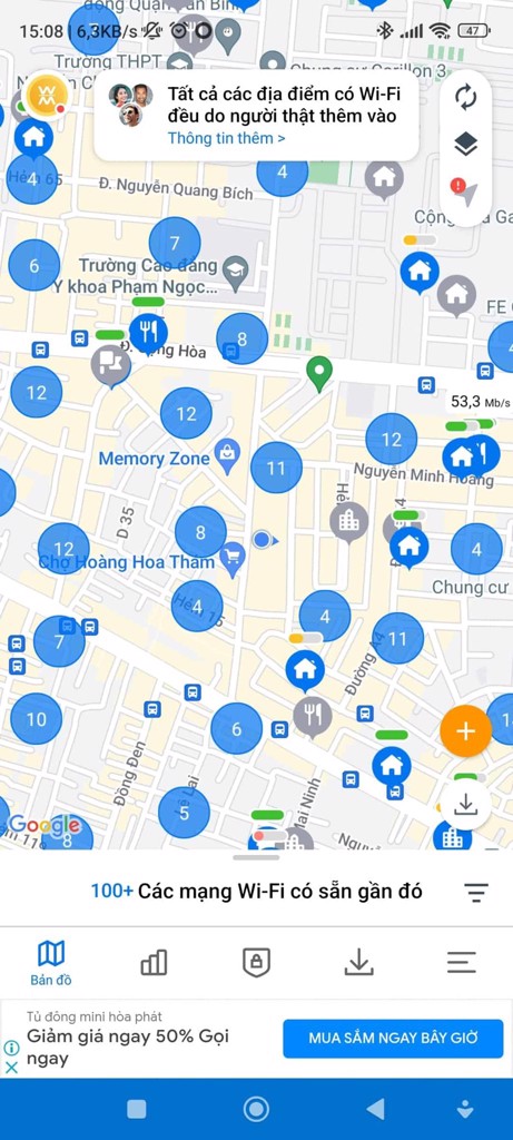 Bước 7: Giao diện chính của WiFi Map sẽ xuất hiện ngay sau đó.