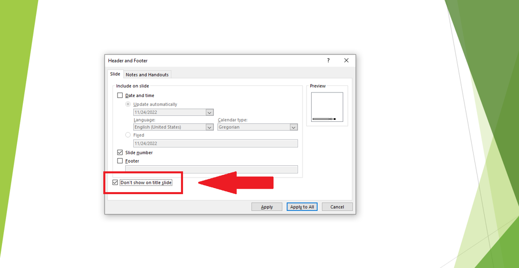 Lưu ý:Để đánh số trang ngoại trừ trang đầu tiên hãy chọn vào mục Don’t show on title slide.