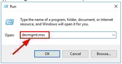 - Bước 1: Nhấn tổ hợp phím Windows + R để mở ra cửa sổ lệnh Run, sau đó nhập devmgmt.msc vào rồi nhấn Enter để đến màn hình Device Manager
