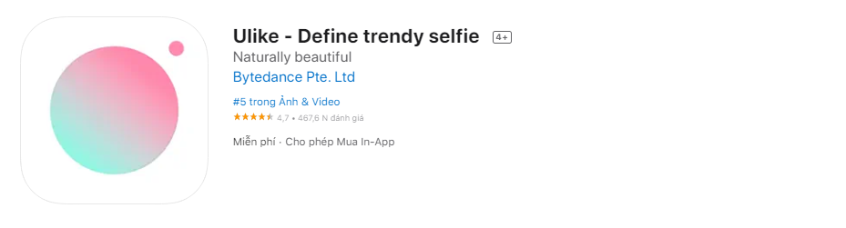 App chỉnh ảnh đẹp Ulike (Bảng tiếng Trung)
